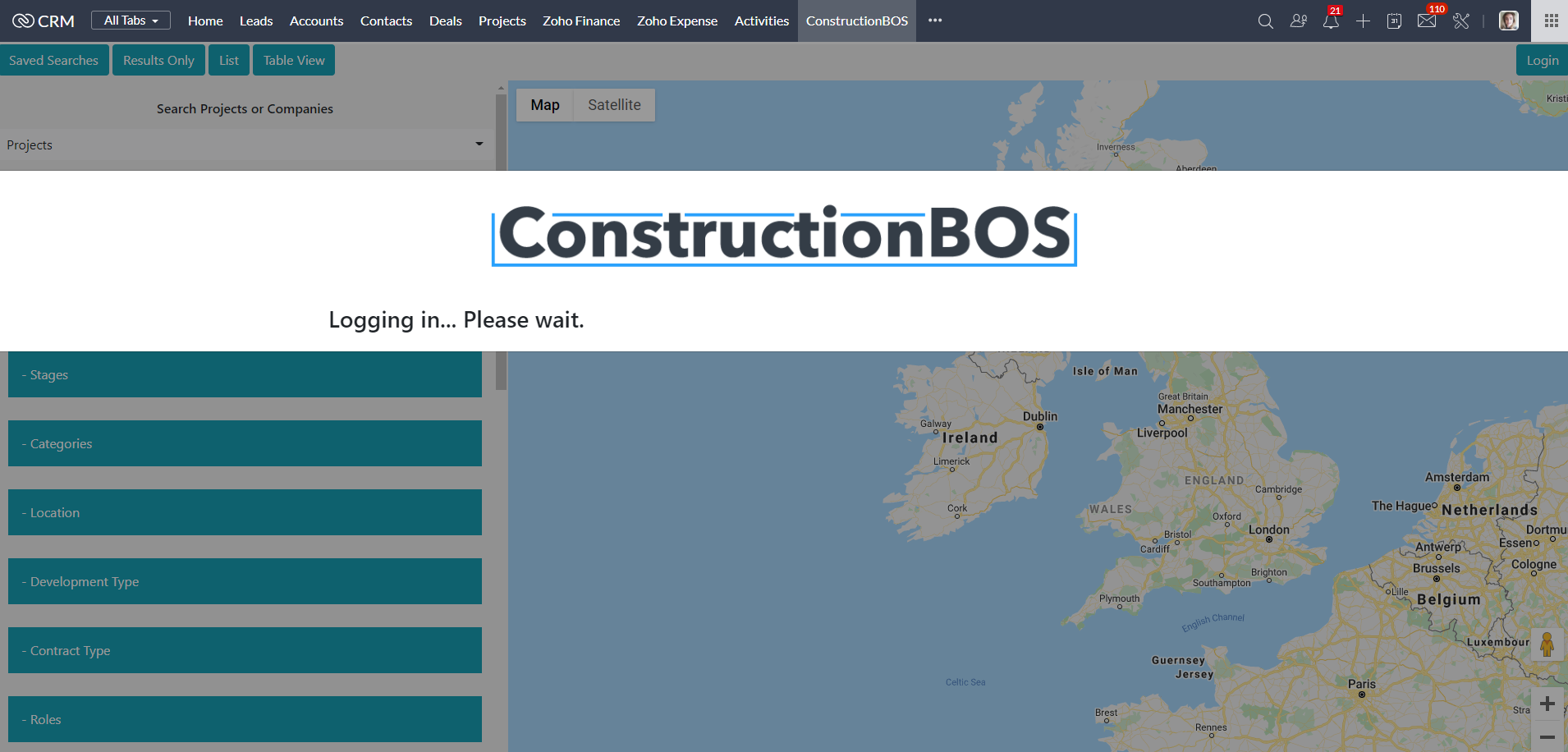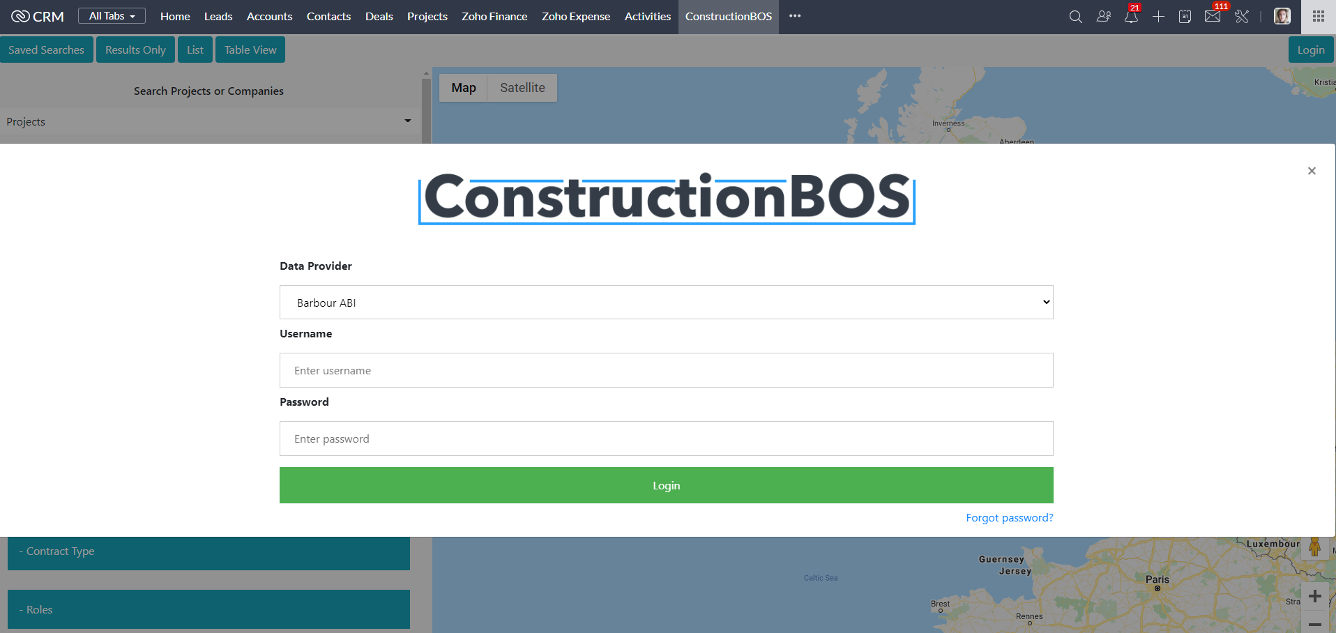 When you open the ConstructionBOS module in your CRM the below pop-up will appear: