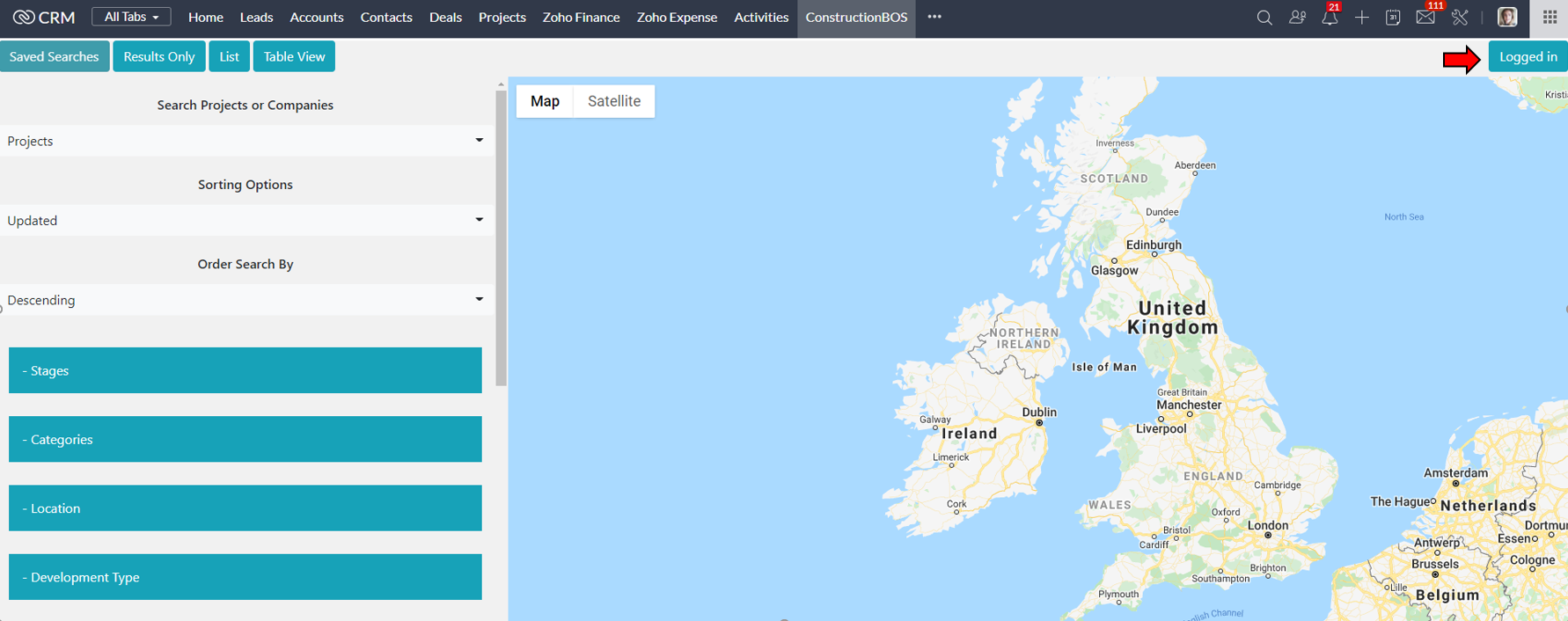 You will then see 'Logged In' in the top right-hand corner:
