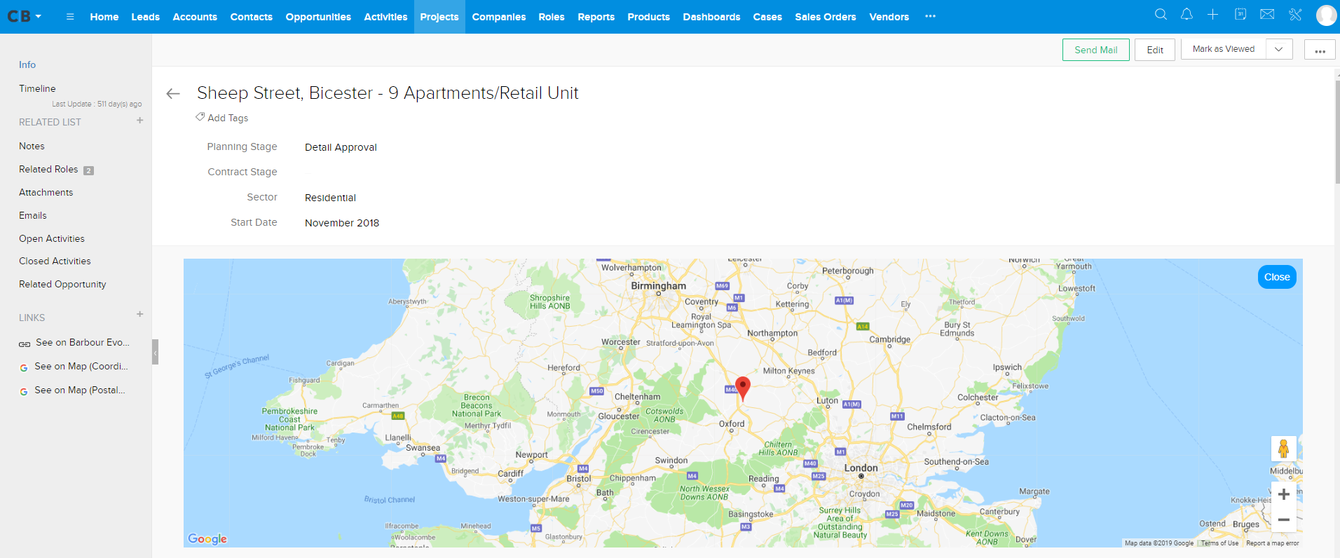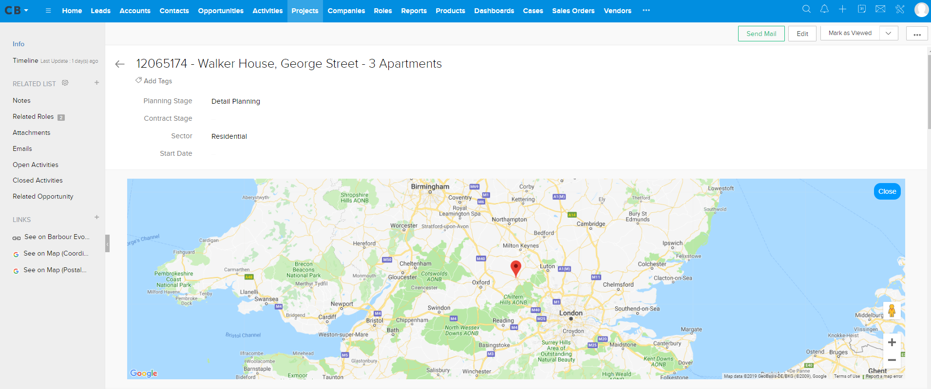 Underneath the Map is the Project information; This contains the Project Name, Project Owner, Description, Estimated Value etc.