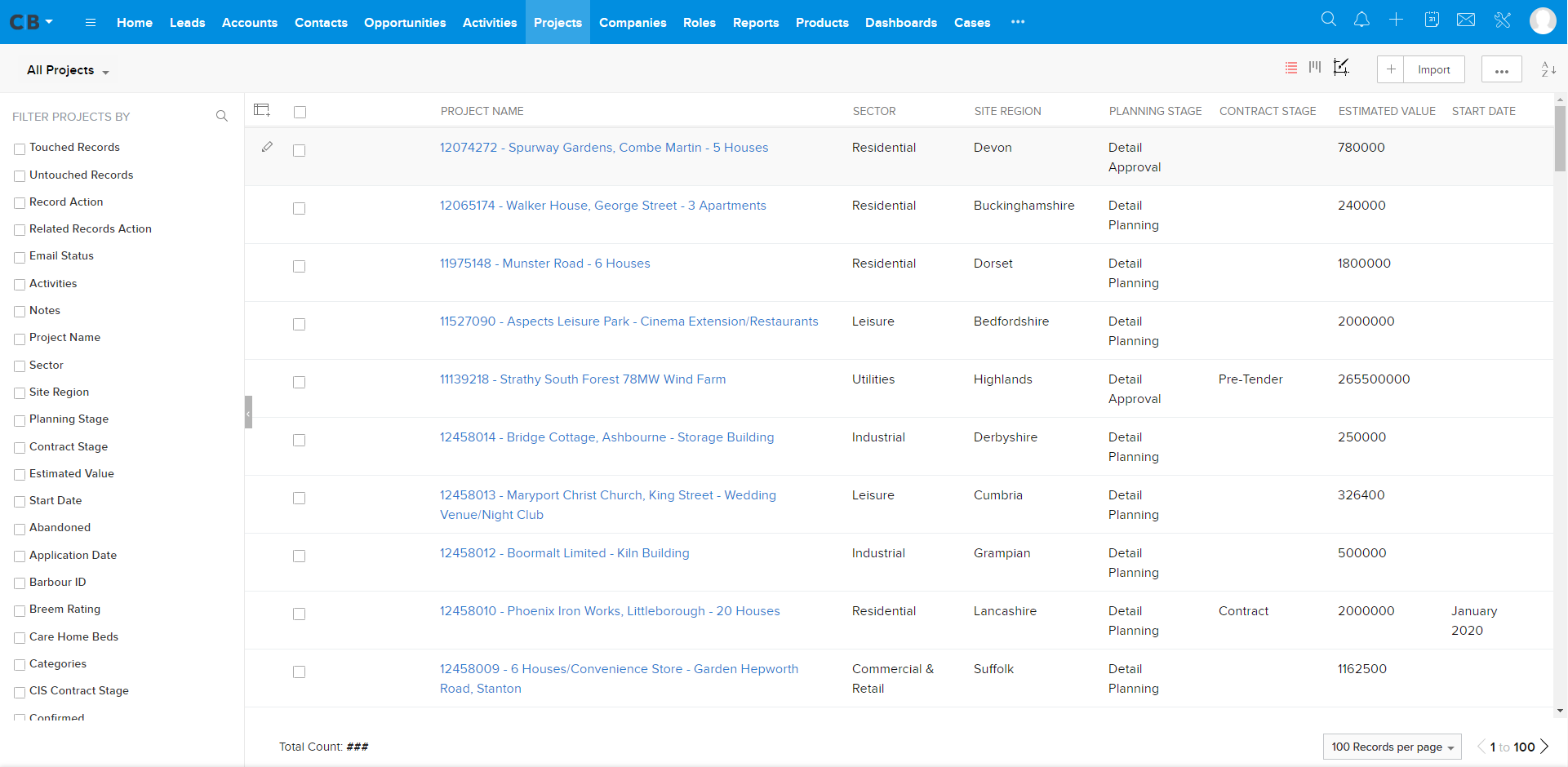 For the example above we have an 'Architect' and a 'Client' listed against the project, at any given time you can use this to see what a certain company is doing.